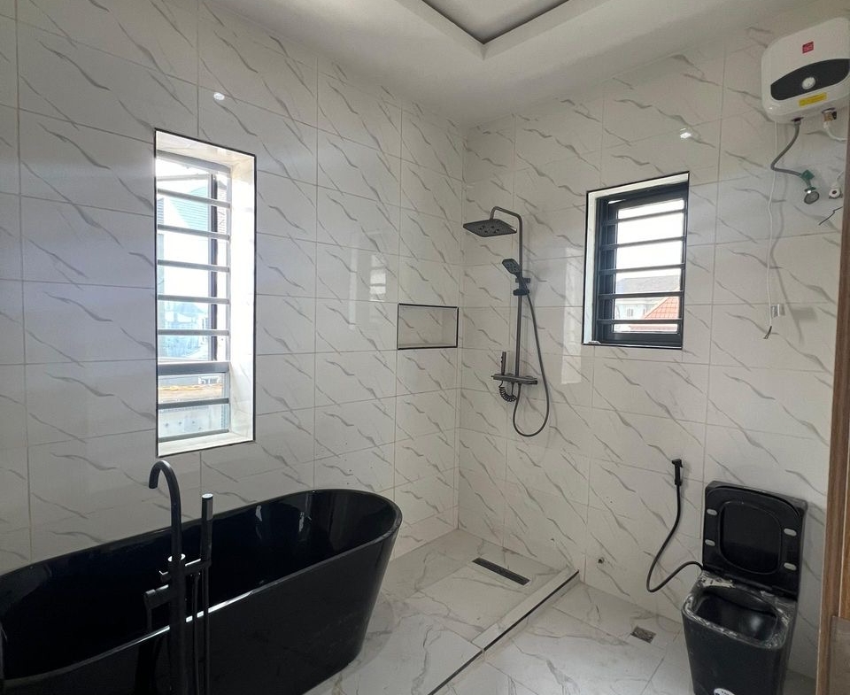 En-suite rooms | Spacious living quarters | Integrated Sound system | Family lounge | Smart home features | Fitted Wardrobes | Fitted kitchen | Jacuzzi | Water heaters | Modern toilet wares | Balcony | Beautiful lightings | Dining area | BQ | Spacious compound | Green Area | Stamped concrete floor | Good road network | Prestigious location | Close proximity to Major Malls & Market | 24/7 Security.