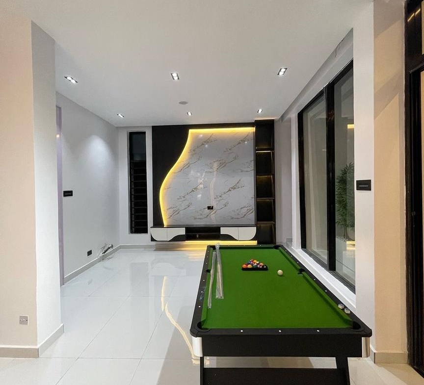 Contemporary Modern Design | Spacious Living Area | Dining | Aesthetic lighting | Modern Luxury Appurtenances | Family Lounge | TV Consoles | Inbuilt Audio System | Good road network | Fully Equipped And Fitted Kitchen | Pantry | Modern Appurtenances | Beautifully Crafted Wardrobes | Motion Sensor Lightings | All Rooms En-Suite | Luxury Sanitary Wares | Greenery | Maid’s Room | Secure Gated And Access Control Estate | BQ | Great Neighbourhood | Home Office | Gazebo | Swimming pool | Cinema
