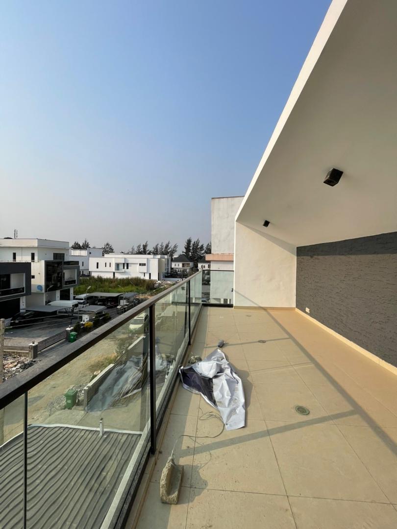 All room En-suite | Aesthetic pop ceilings | Spot lighting | Chandelier | ⁠Rooftop terrace | Sound system | Spacious living room | Cctv cameras | Clean water | Top quality tiles | Swimming Pool |  | Master’s suite | Walk-in closet | Walk-in shower | Jacuzzi | Ample parking spaces | Secured estate | ⁠Cinema | Good access roads | BqAb